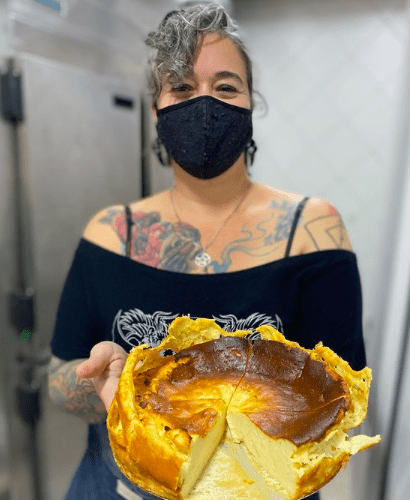 Tortinha rústica de espelta, cacau, maracujá e tangerina cristalizada.