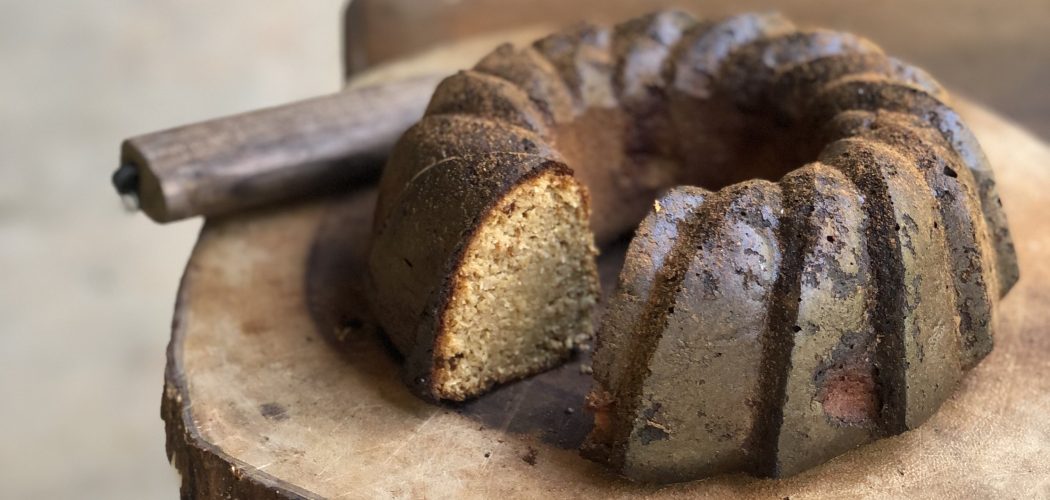 Bolo de casca de banana madura, aproveitando a banana inteira, algumas bananas passas que iam passar na fruteira e foram desidratadas semana passada, farinha de coco que ‘sobrou’ do leite vegetal. Usei 3 bananas com casca, 1/4 de xícara de bananas passas com casca também,… mais